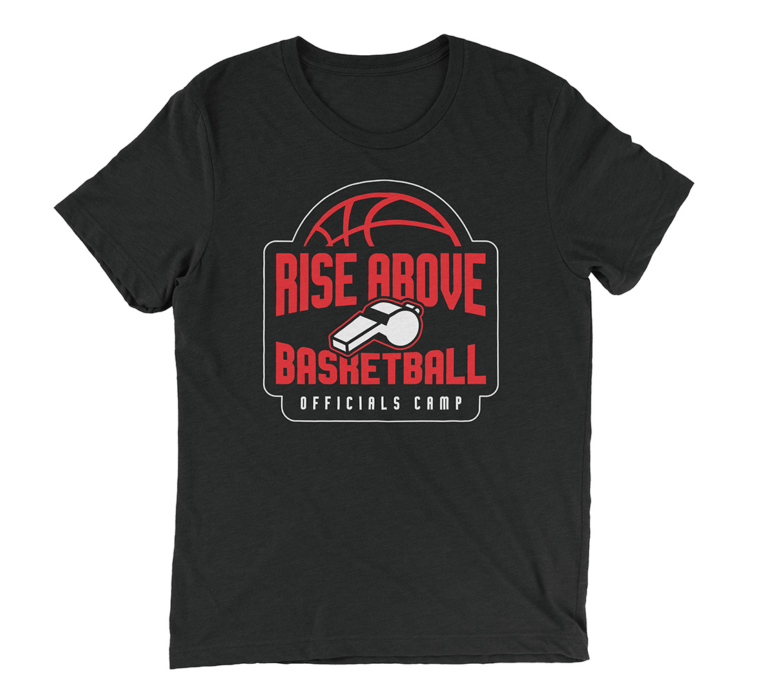 Logo and T-shirt design for a camp held by Rise Above Basketball dedicated to training basketball officials.
